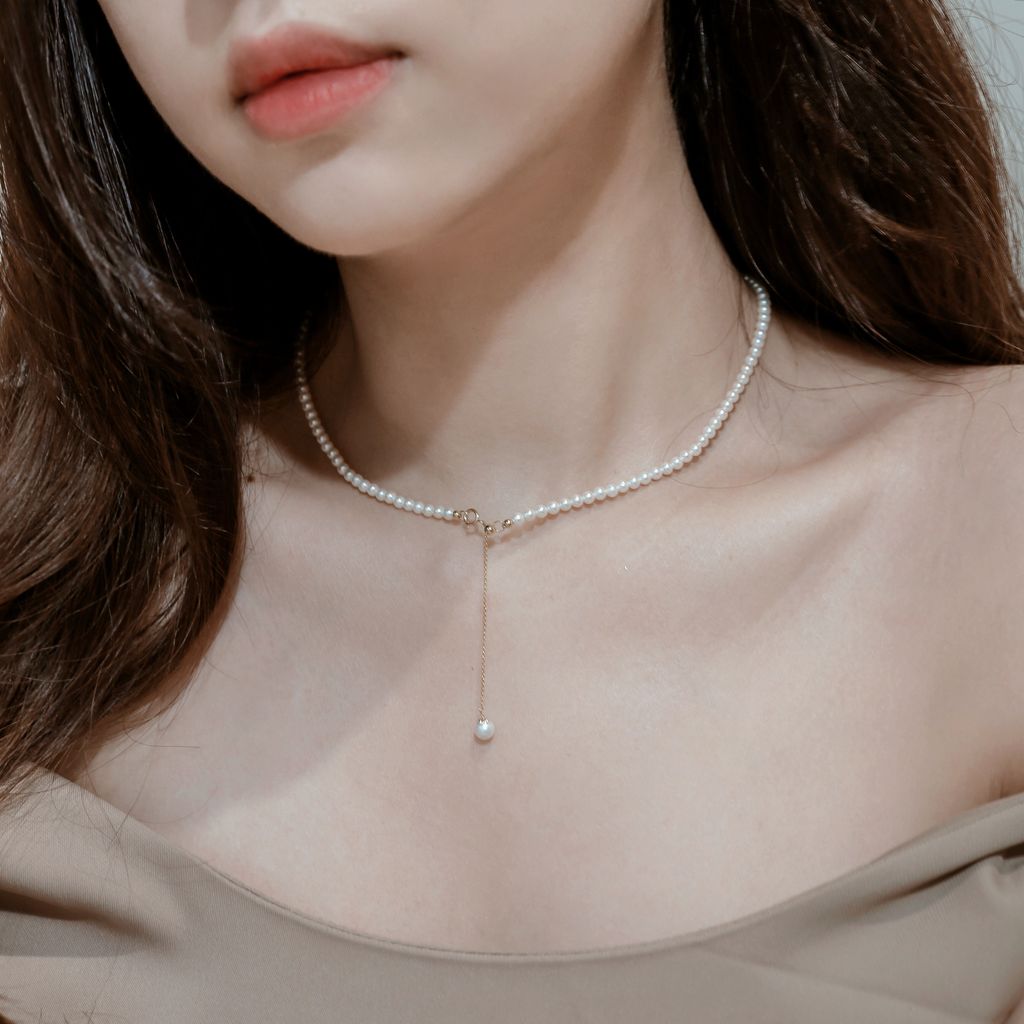 前面是單條細緻珠串,反戴垂掛珍珠更好看